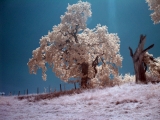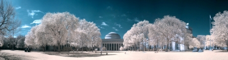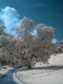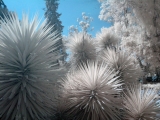 I modified a Canon A720IS to take near-infrared pictures. I removed the inner IR-blocking filter from the CMOS sensor (camera surgery photos) and put an exposed and developed film negative over the lens. The exposed negative allows infrared light through, but blocks nearly all visible light.