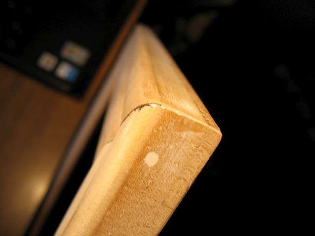 Now I had a rudimentary computer, but it still didn't look quite like what I had imagined. Reorienting the screen so it sat on top of the main computer body (imagine a laptop with an "inside-out" screen) helped, but it was lacking that special something...something every picture frame should have..ah! A frame! Wanting this project to come out as professionally as possible, I made very careful measurements. Actually, I bought the wood back home, but the computer was still at school. Since the miter saw was also at home, I couldn't wait to get back to school to measure the screen and cut the wood. Behold the power of the interweb! I discovered that my model "laptop" has a 15" diagonal screen. I also knew that the Inspiron 8000 has a 4:3 aspect ratio--that is, the long side and short side are in a 4:3 ratio. Armed with these two facts, mathematics, and