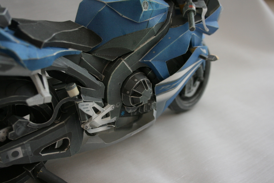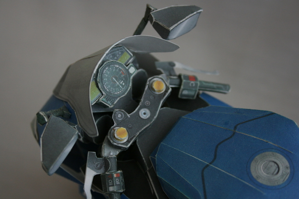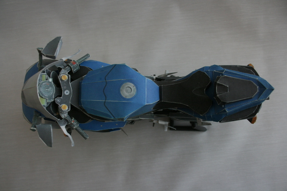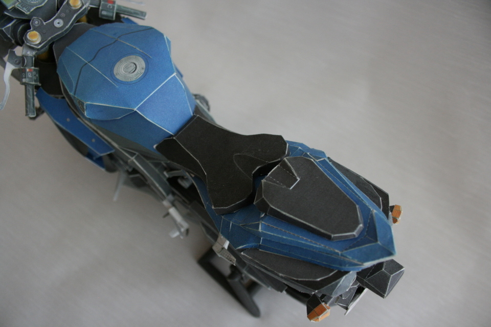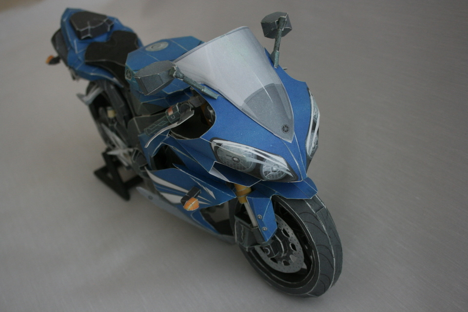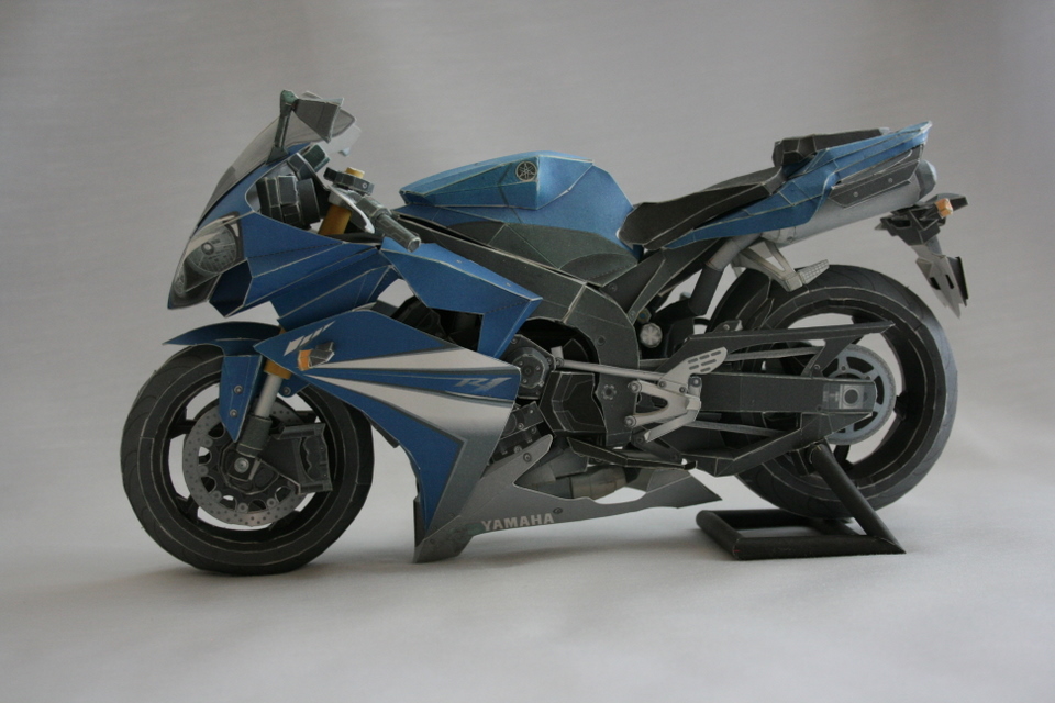 This model motorcycle is made entirely out of paper and glue. It can be downloaded